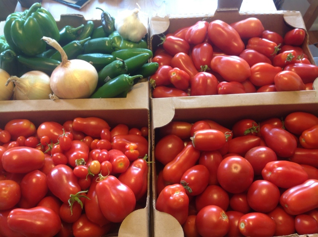 Tomato season is here at last, and that of course means salsa season! So yesterday I grabbed my good pal Kiki, picked all my red tomatoes and set out to make some salsa. I first made this salsa last year and it was so delicious it had to be the first thing I used tomatoes for this year. This recipe is from the Ball Complete Book of Home Preserving. Warning, if you make this salsa you will never want to eat store bought salsa again!