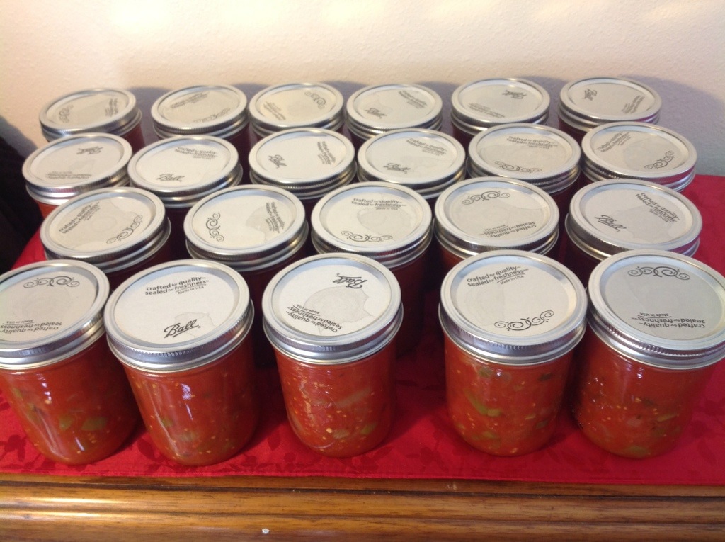 Reminder: salsa is one of those foods that can be borderline acidic enough for hot water bath canning, so never alter the ratios in a recipe. It is not safe, for example, to add extra peppers because they reduce the overall acidity. Adding more vinegar for acidity can compensate, but never “guesstimate,” look for a trusted and tested recipe if you like a different ratio of ingredients in salsa.