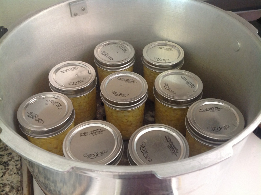 Some people have asked me, “Why would you bother canning corn, it’s 97 cents at the store?” To those people I say … Uh, shut up. But seriously, anything home canned is worth it. I know my canned corn was freshly picked, immediately canned and contains only corn and water. Plus corn was on sale at the farm stand for 20 cents so I got the 20 ears for $4. And I’m a canning addict. I also like that you can put it in any size jar you like (well within reason, not a half gallon). I just eat a bit at a time, so can in half pints, but if you eat a ton of corn it could be nice to open up a whole quart at a time.