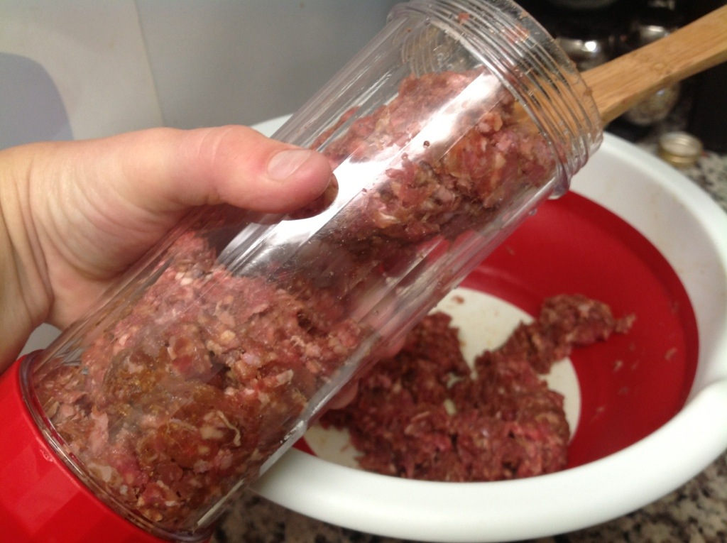 Here’s how I made it. Mix one pound of lean ground beef (93% lean or more) with one cure packet and one flavour packet. Add a little extra cayenne for spice if you desire (you DO desire it!)