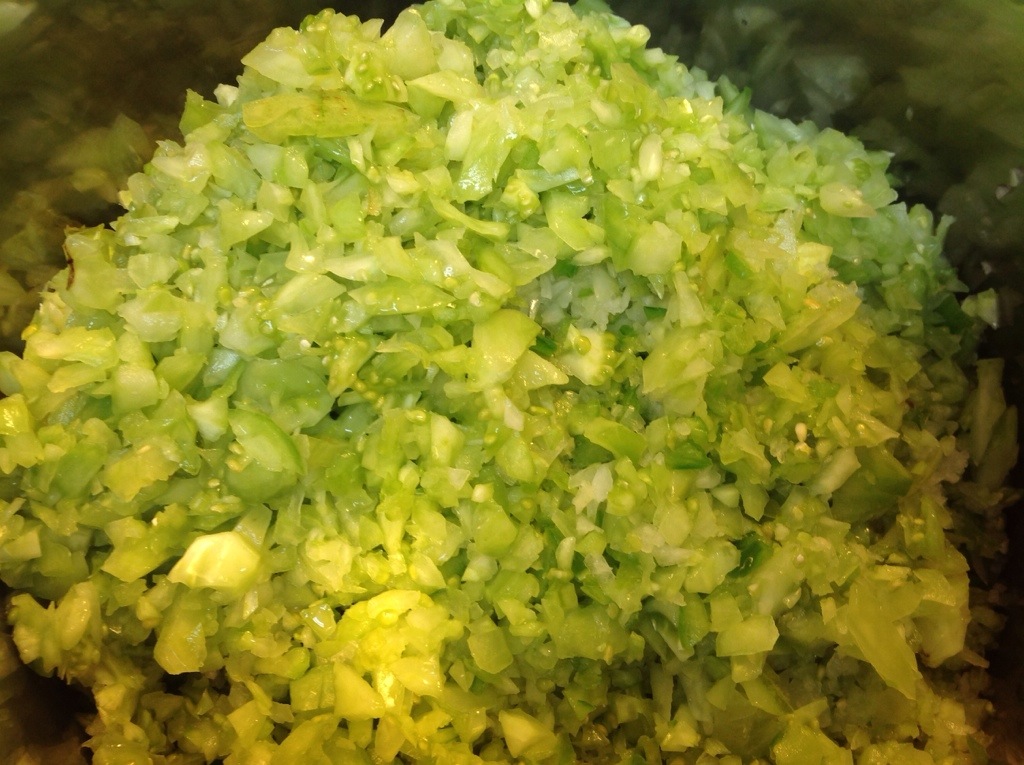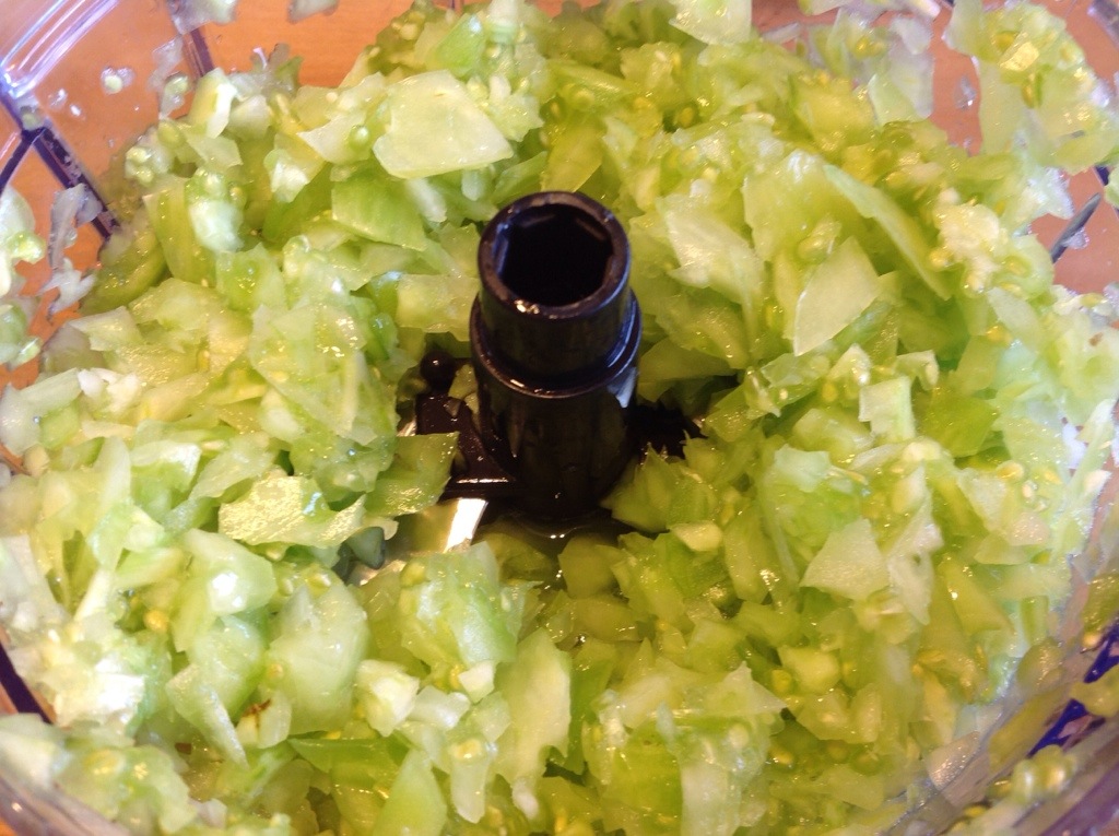 I wanted the tomatoes, peppers and onions chopped pretty finely so I used my little food processor on all three.