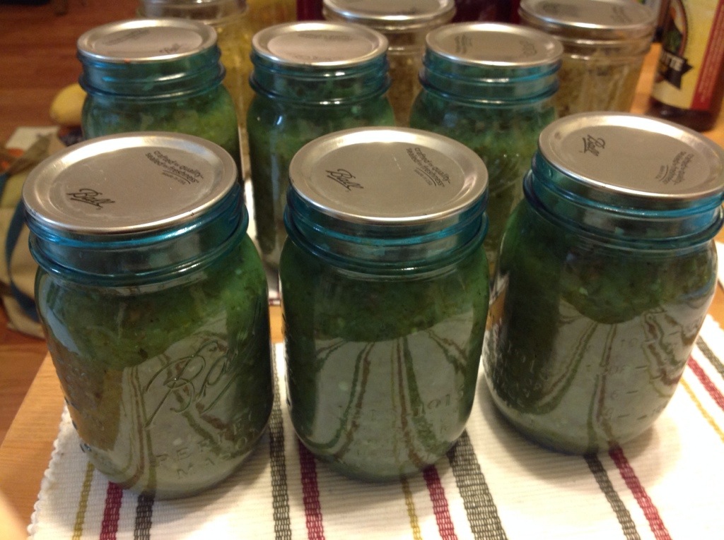 After 15 minutes, turn off the heat, remove canner lid, wait 5 minutes and remove the jars to a hot pad or towel. After 12-24 hours remove bands, check seals, label and store! Recipe yields 5 pints.