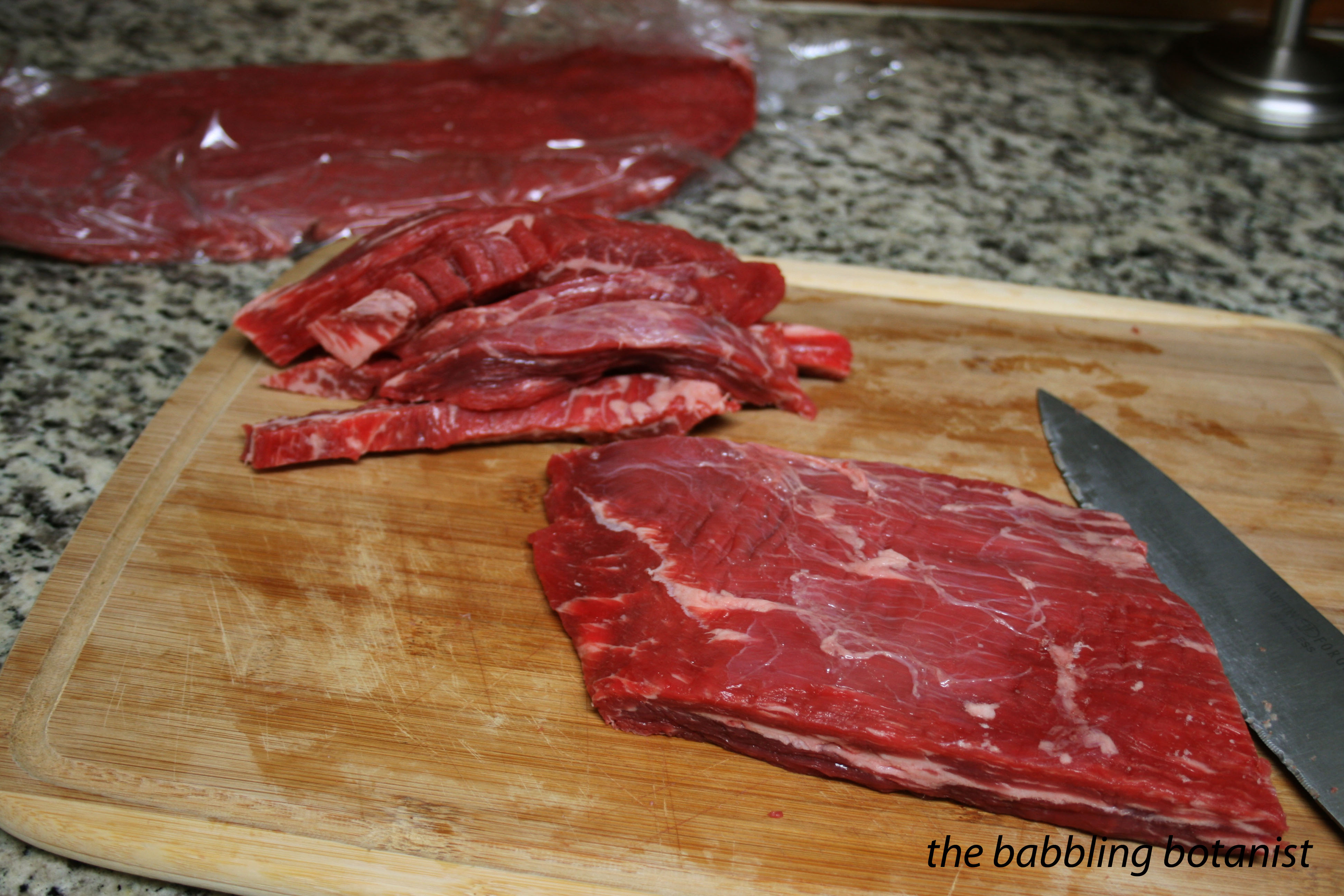 For the beef, I used a flank steak, but any lean cut is good. Chuck, flank, round, rump and sirloin are all good options, and most cuts of game meat are lean so it all works pretty well.