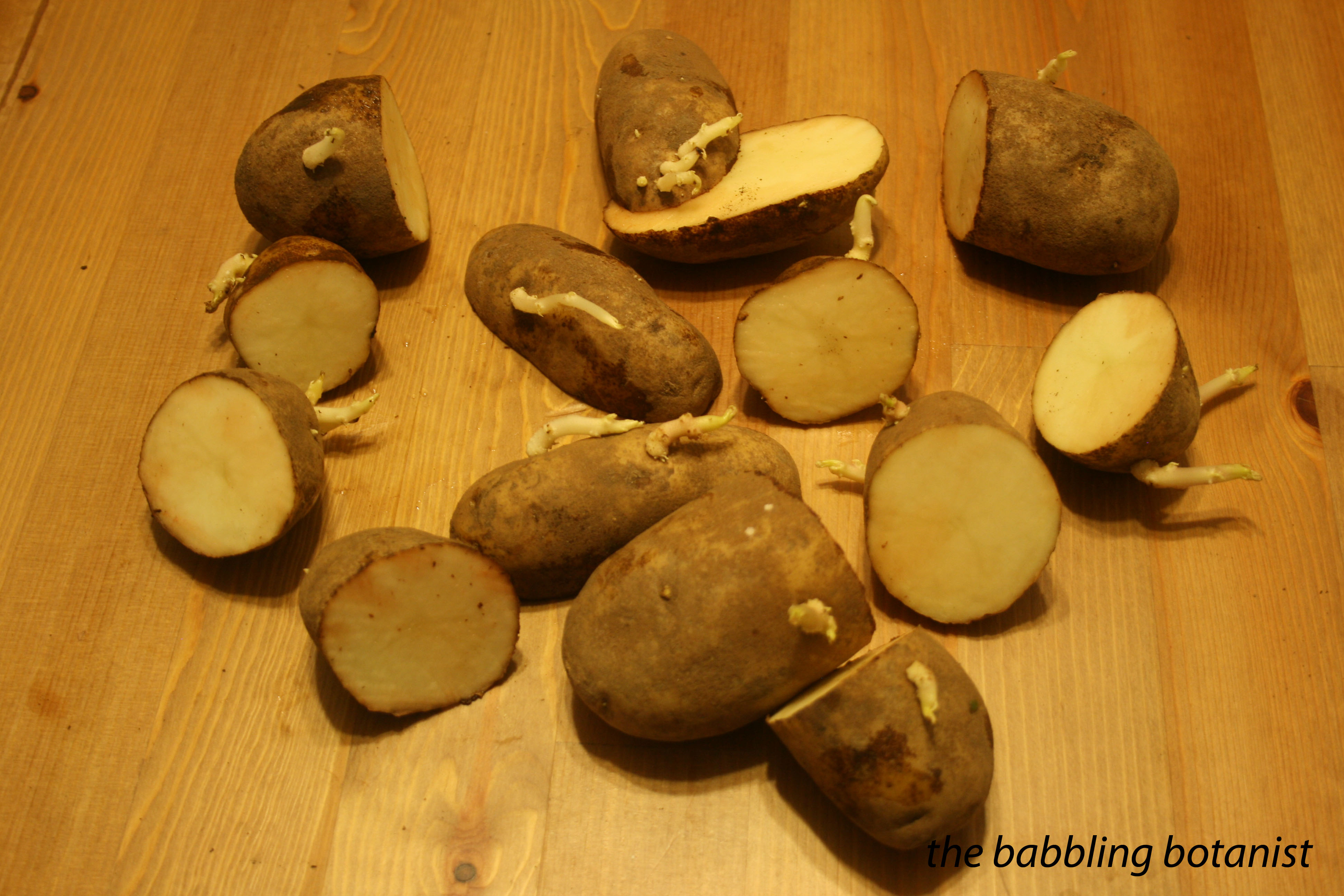 Another thing that can go in this early is potatoes. I got my “seed potatoes” ready to go. I have that in quotations simply because these are potatoes I found in the back of my cupboard and thought, “sweet, I forgot these were there, what perfect timing, I will plant them.” Don’t let the garden centre fool you, seed potatoes are just potatoes. ha! Anyways they are cut and being planted this week.