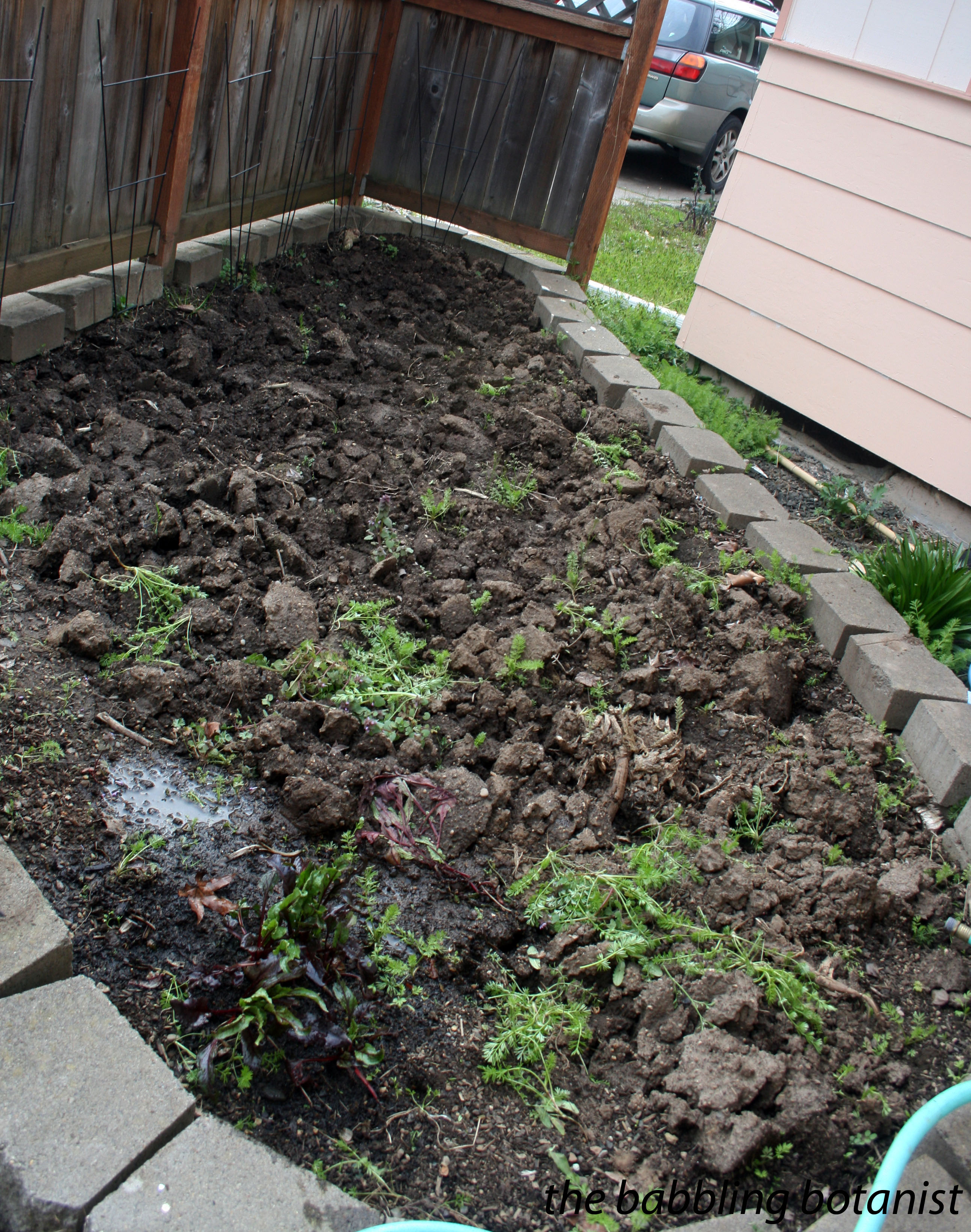 The side yard is a weird shape and not ideal , but I make do. The landlord built a fence around it so it’s more shady than I’d like, but I will do my best to put more shade tolerant plants over here. Excuse the weeds, planting time isn’t quite here yet…