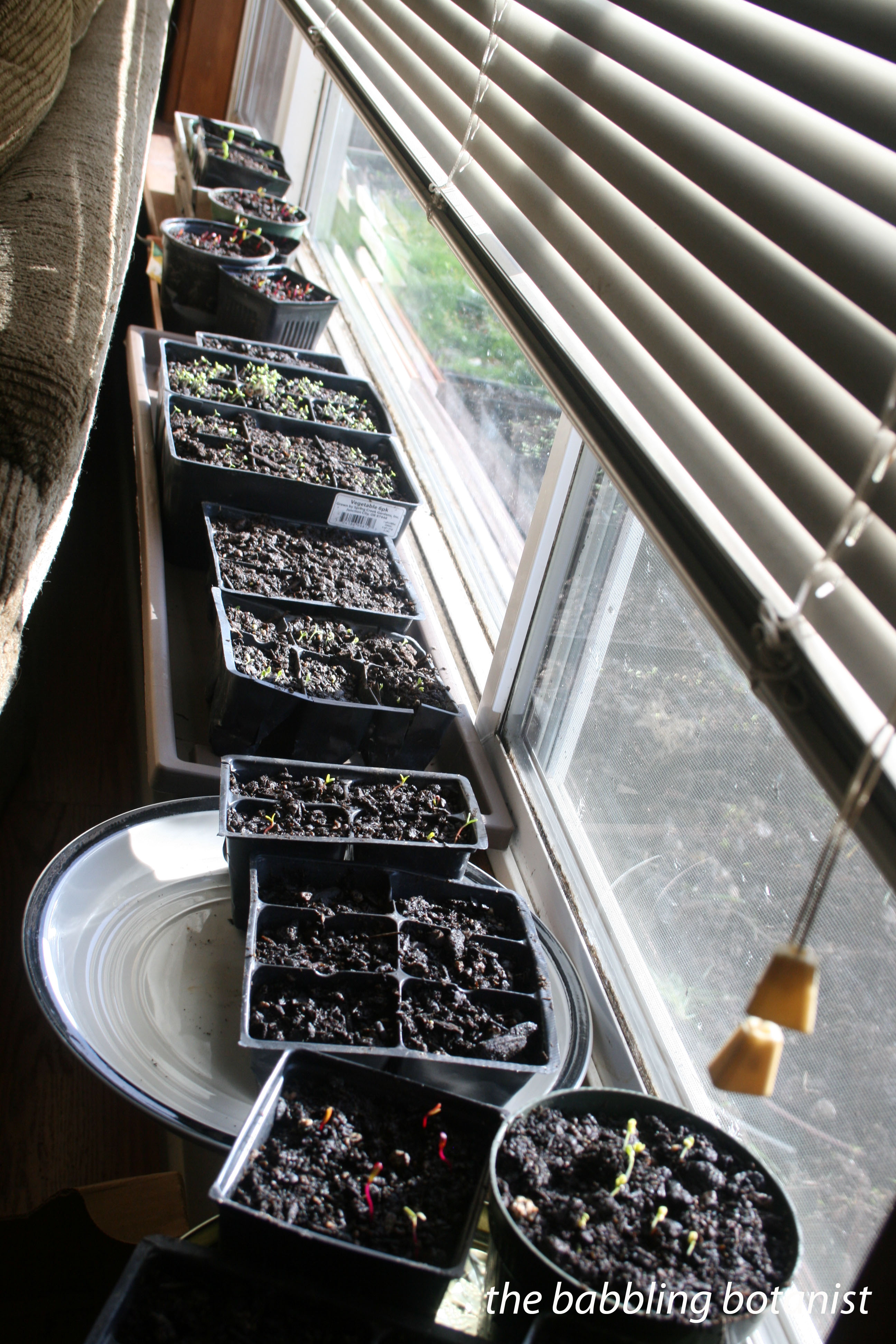 It’s still early so I’m trying not to be over excited, but I did start some things that I know can handle a bit of cold. So far I started a bunch of lettuce, beets, spinach, kale, peas, herbs and some flowers – alyssum and marigolds. In the past I haven’t done a lot of seed starts, but it’s a nice way to get things going. My beets did quite poorly last year so I’m hoping this will help. So here are the babies only about 5 days after I started them. I can’t start many more, my window sill is full!