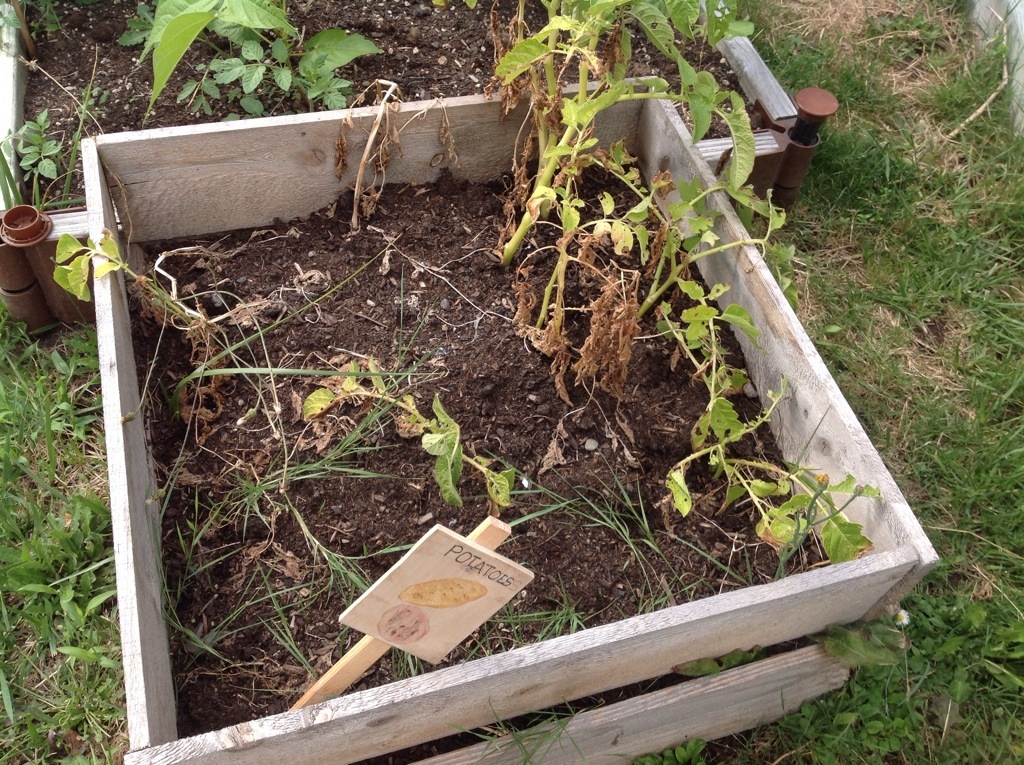Potatoes – I am trying the potato box again. It was moderately successful last year so here’s take 2! Basically as they grow larger you add another layer and build it up to get more taters.