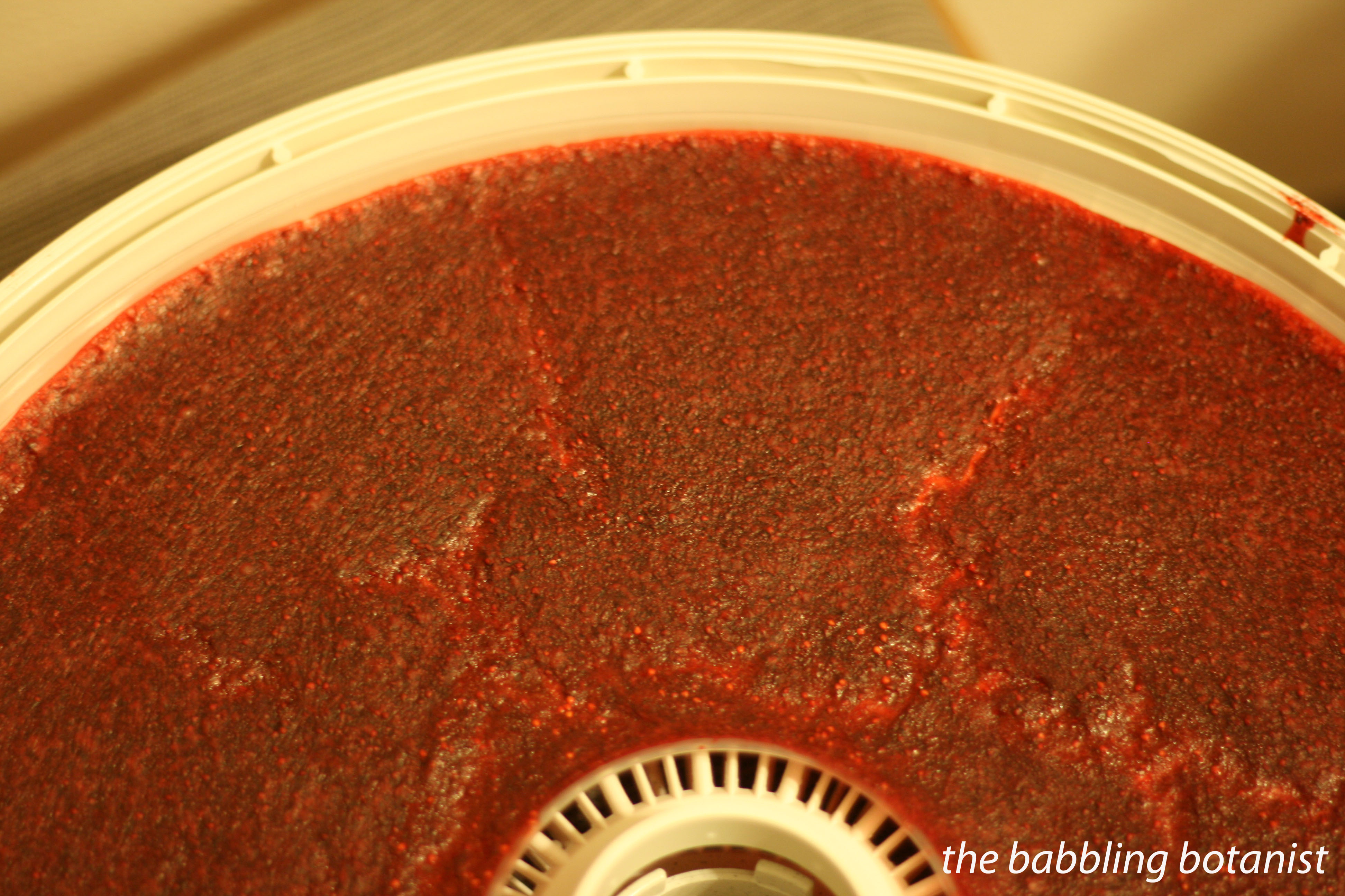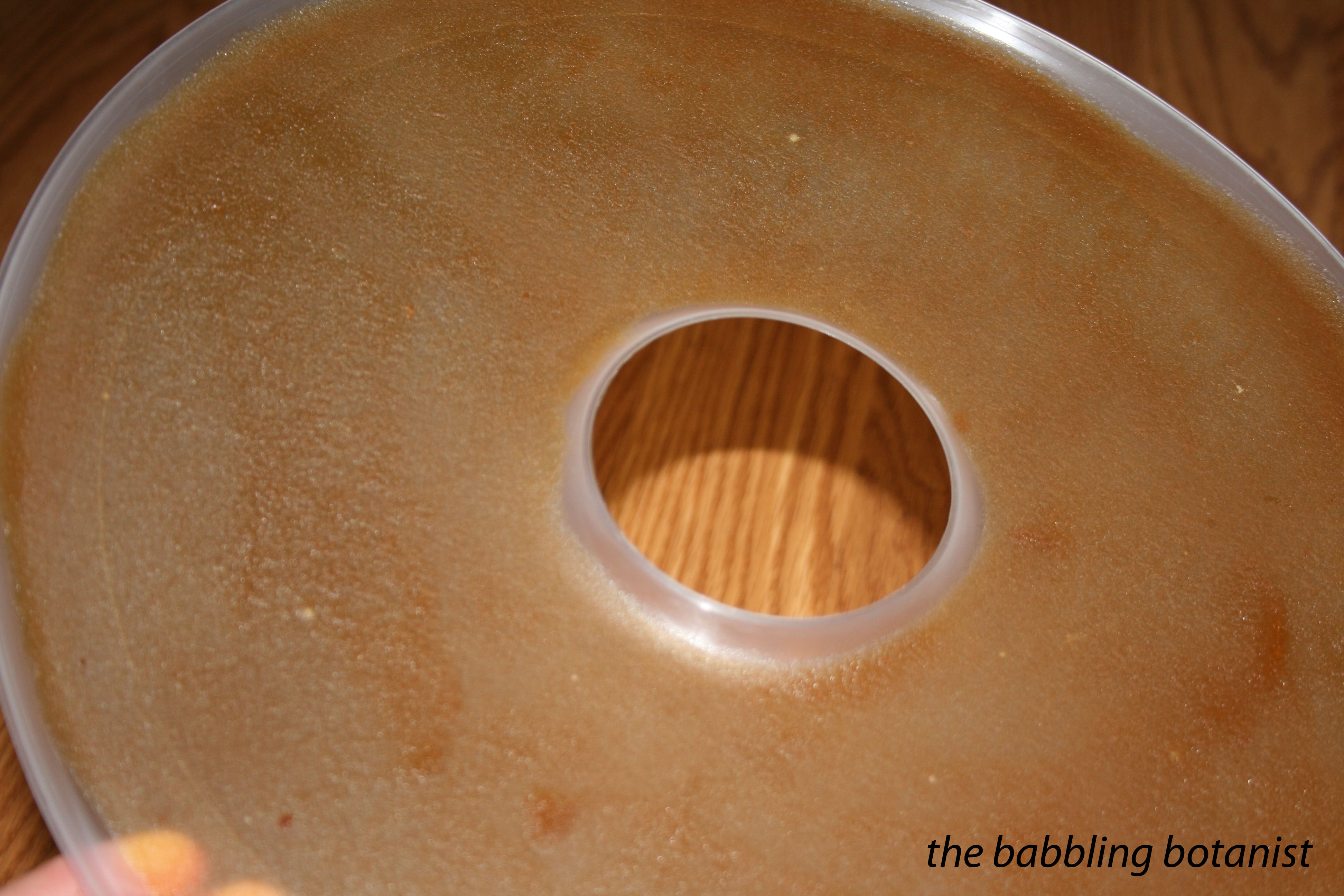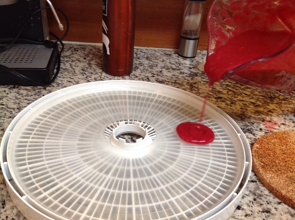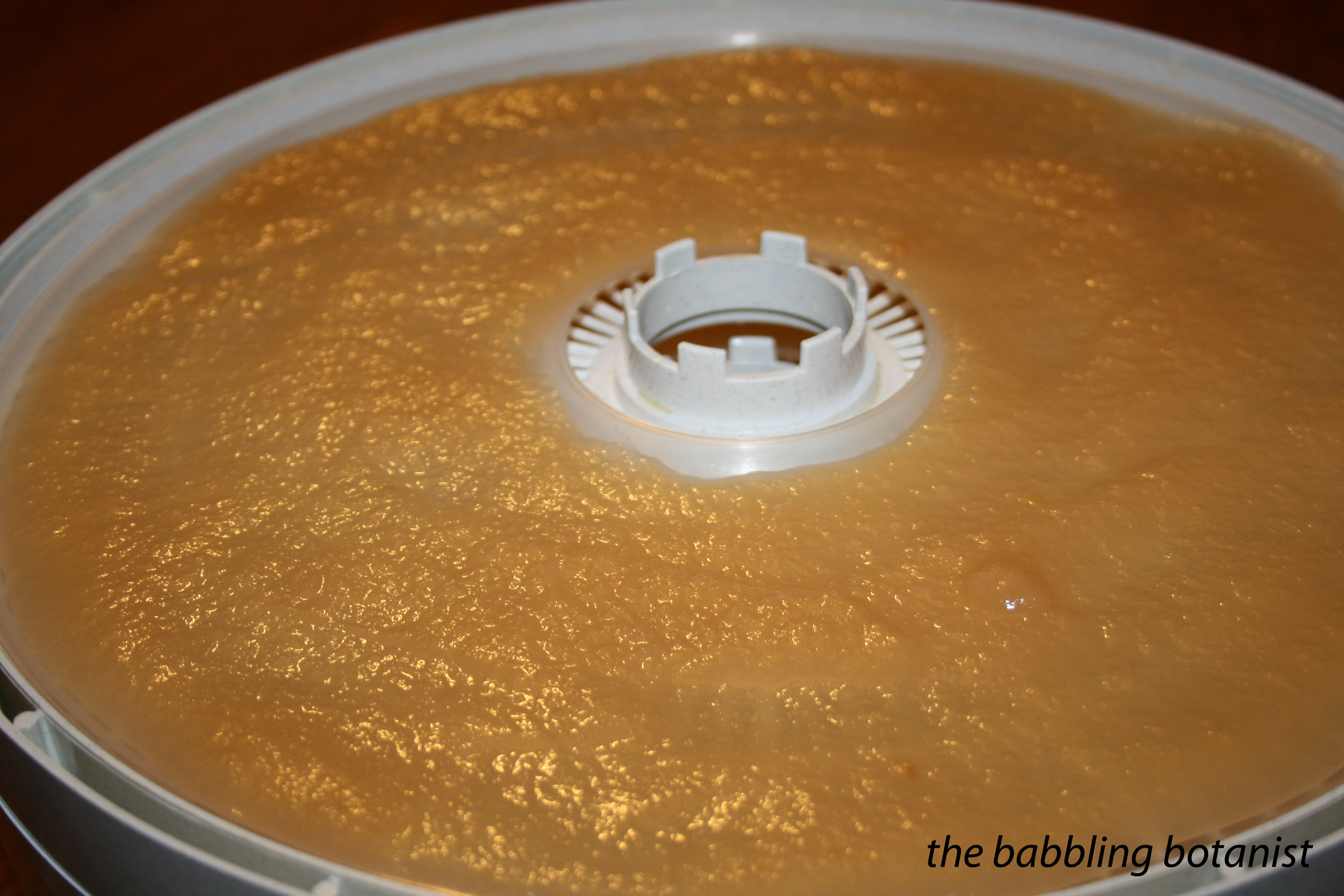 For drying you have two options. For option one I spread the mixture out evenly across a fruit leather tray on the dehydrator, then just broke it into pieces once dry.