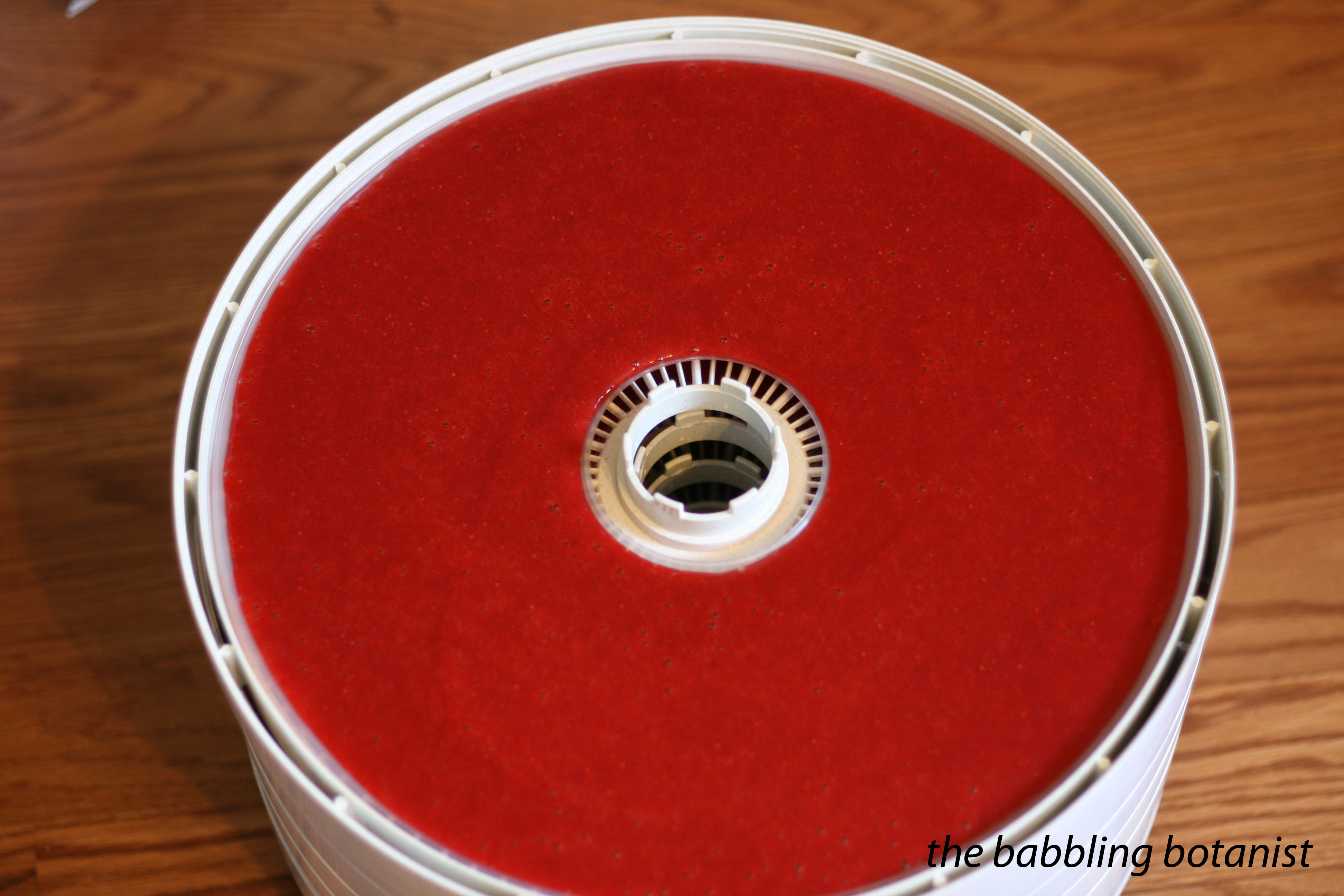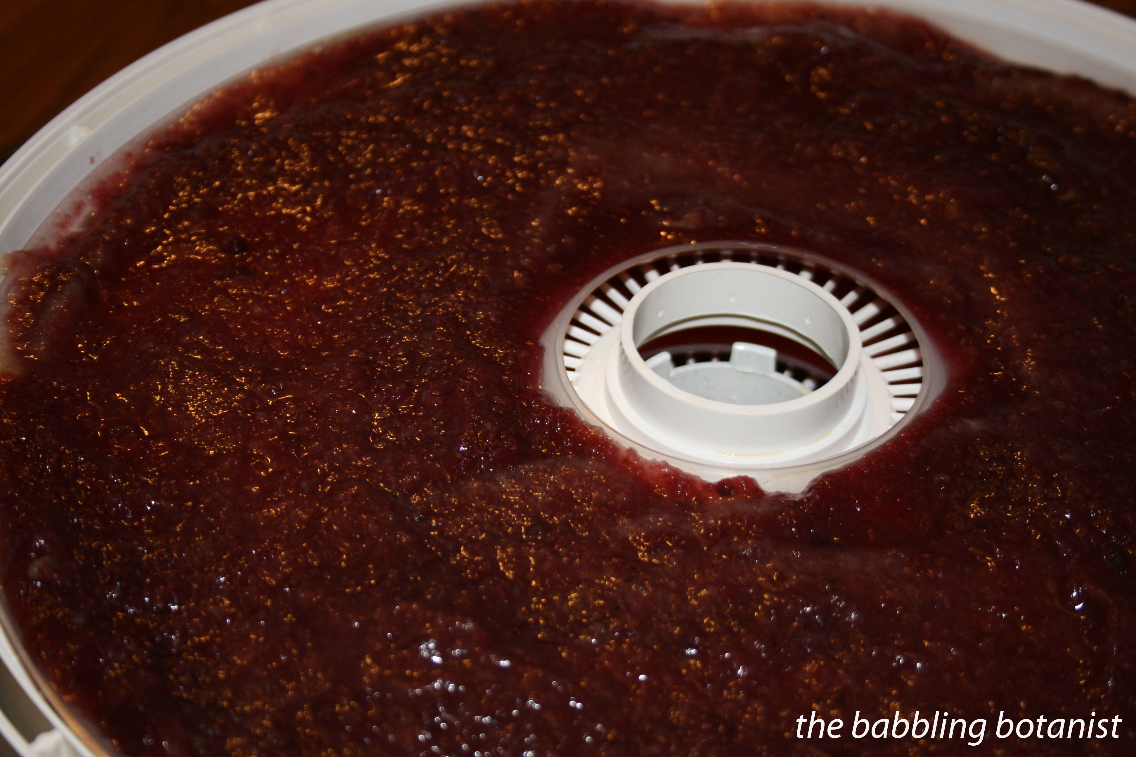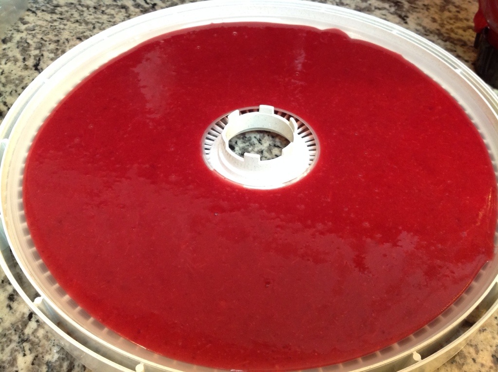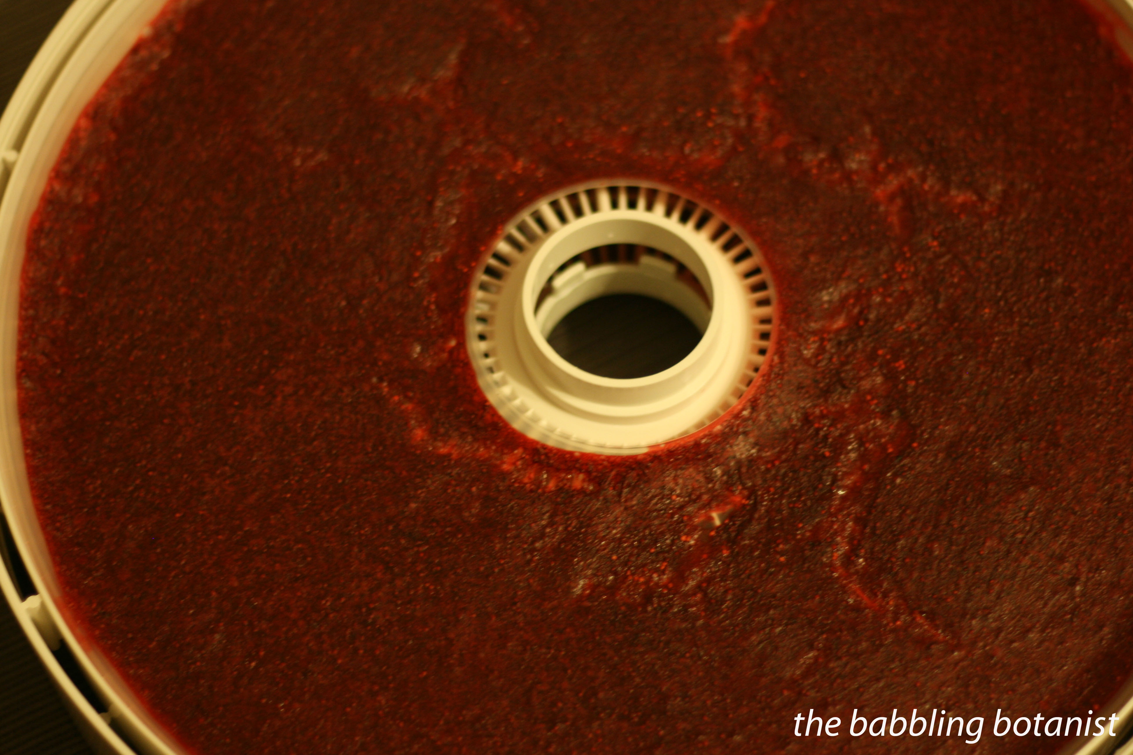 For drying you have two options. For option one I spread the mixture out evenly across a fruit leather tray on the dehydrator, then just broke it into pieces once dry.