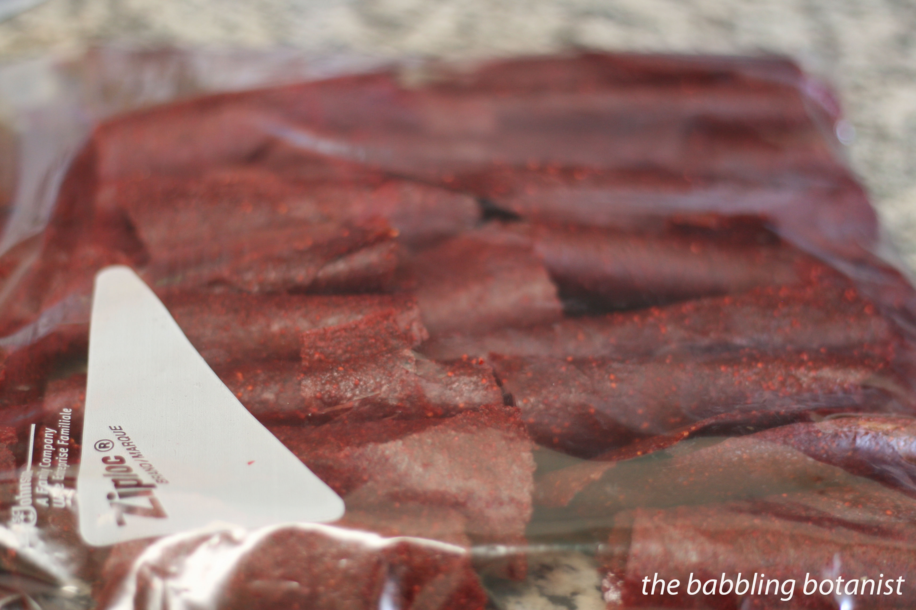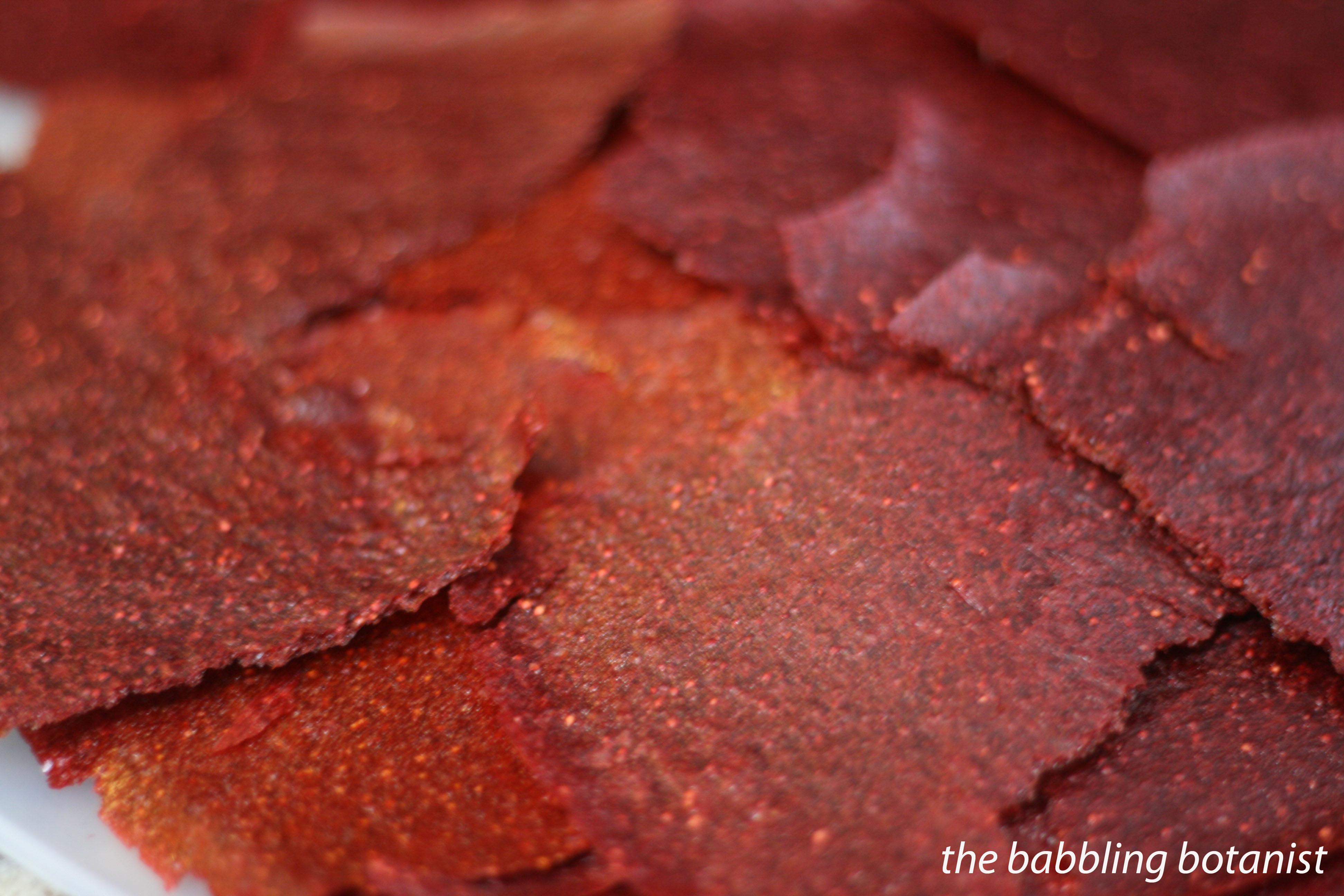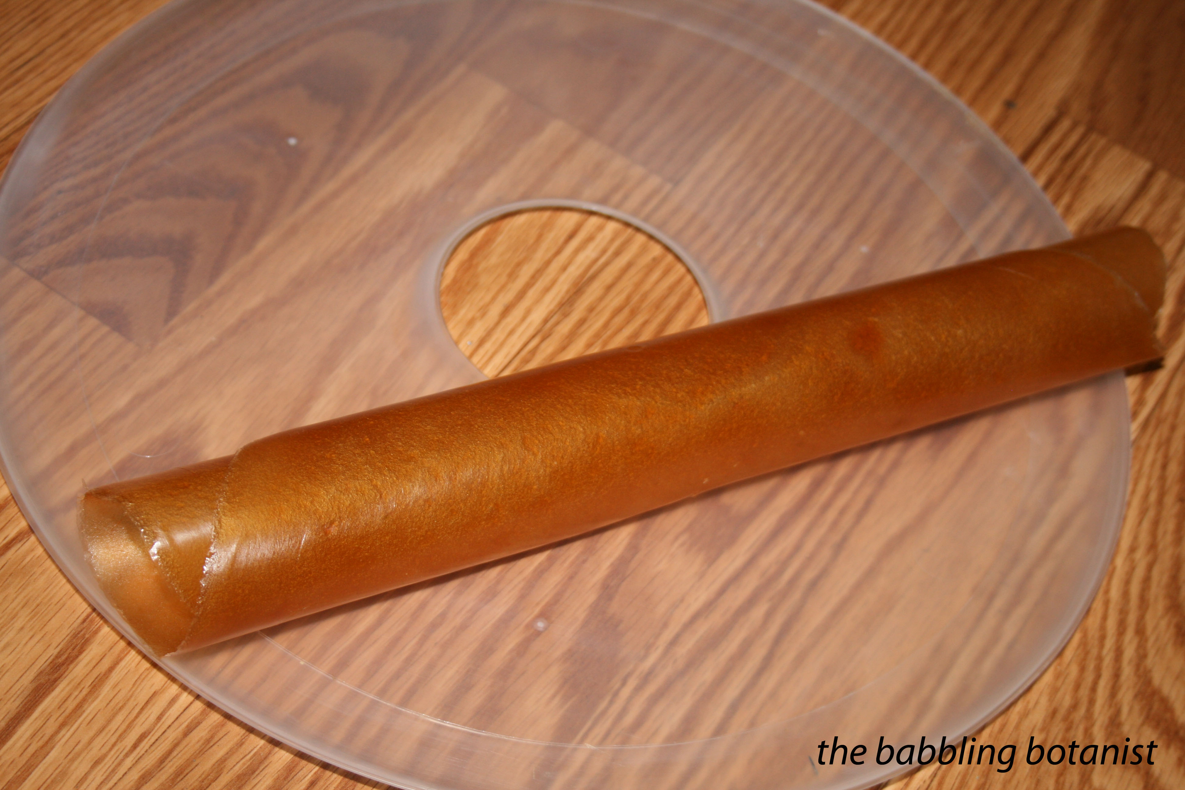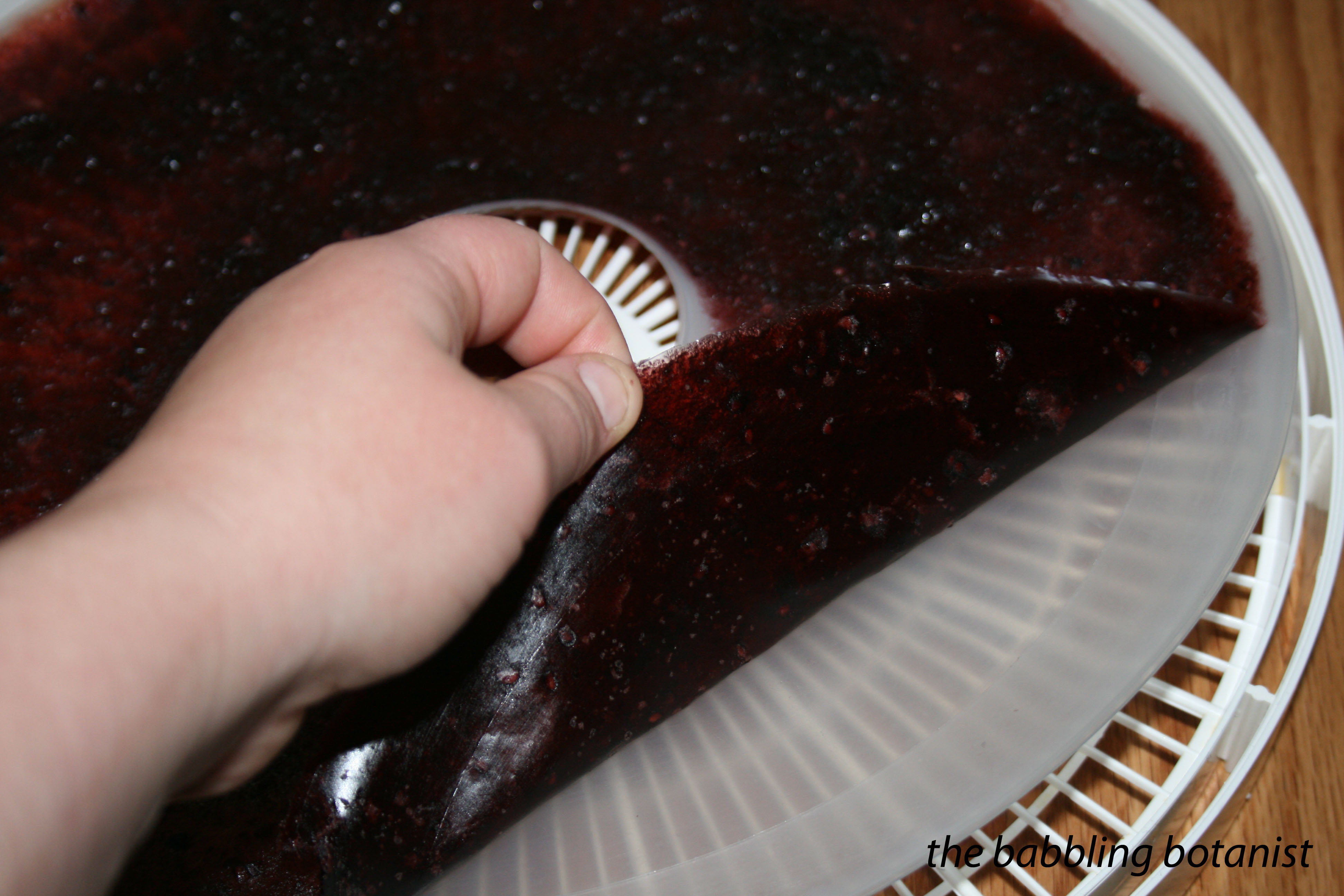For drying you have two options. For option one I spread the mixture out evenly across a fruit leather tray on the dehydrator, then just broke it into pieces once dry.