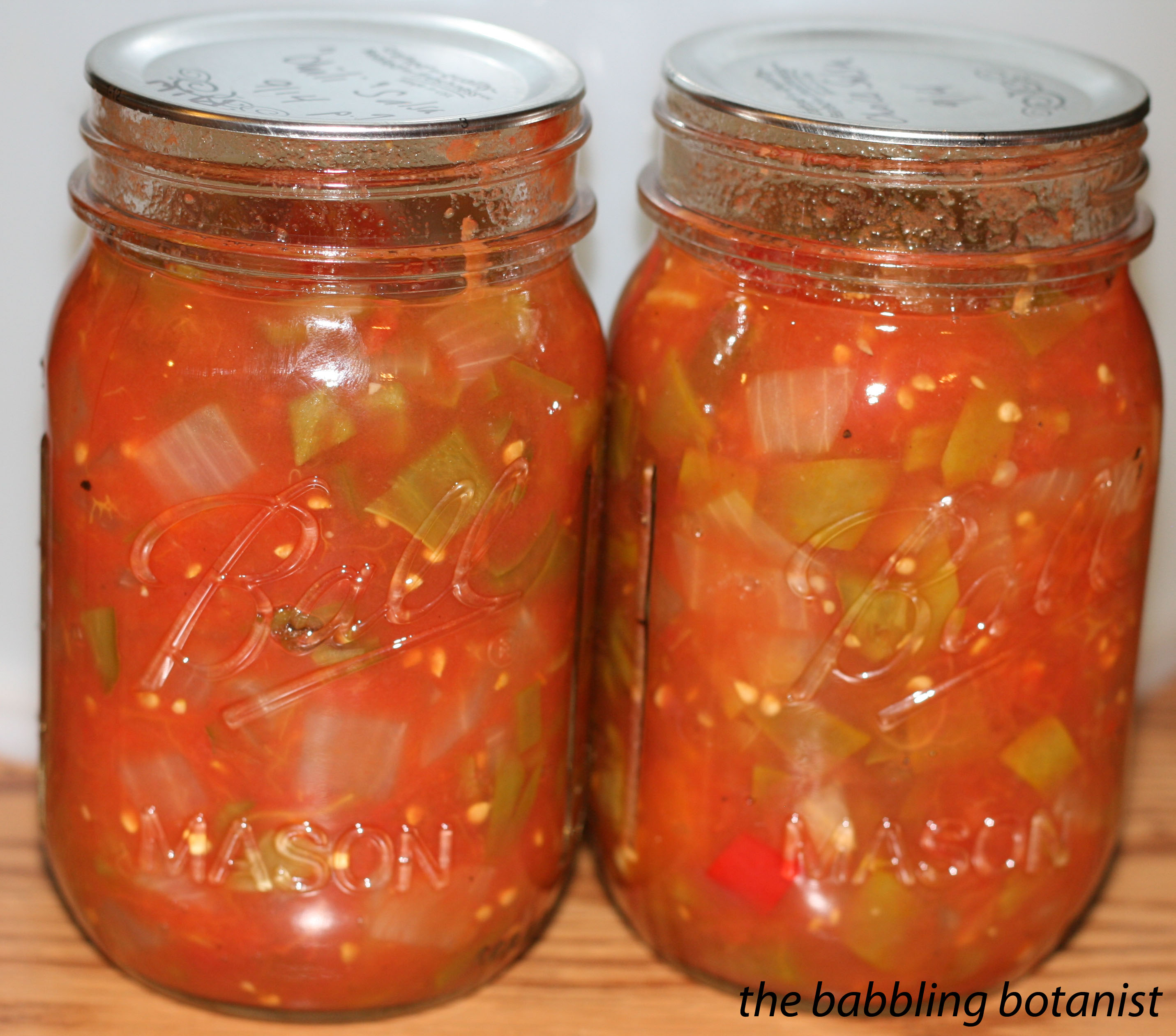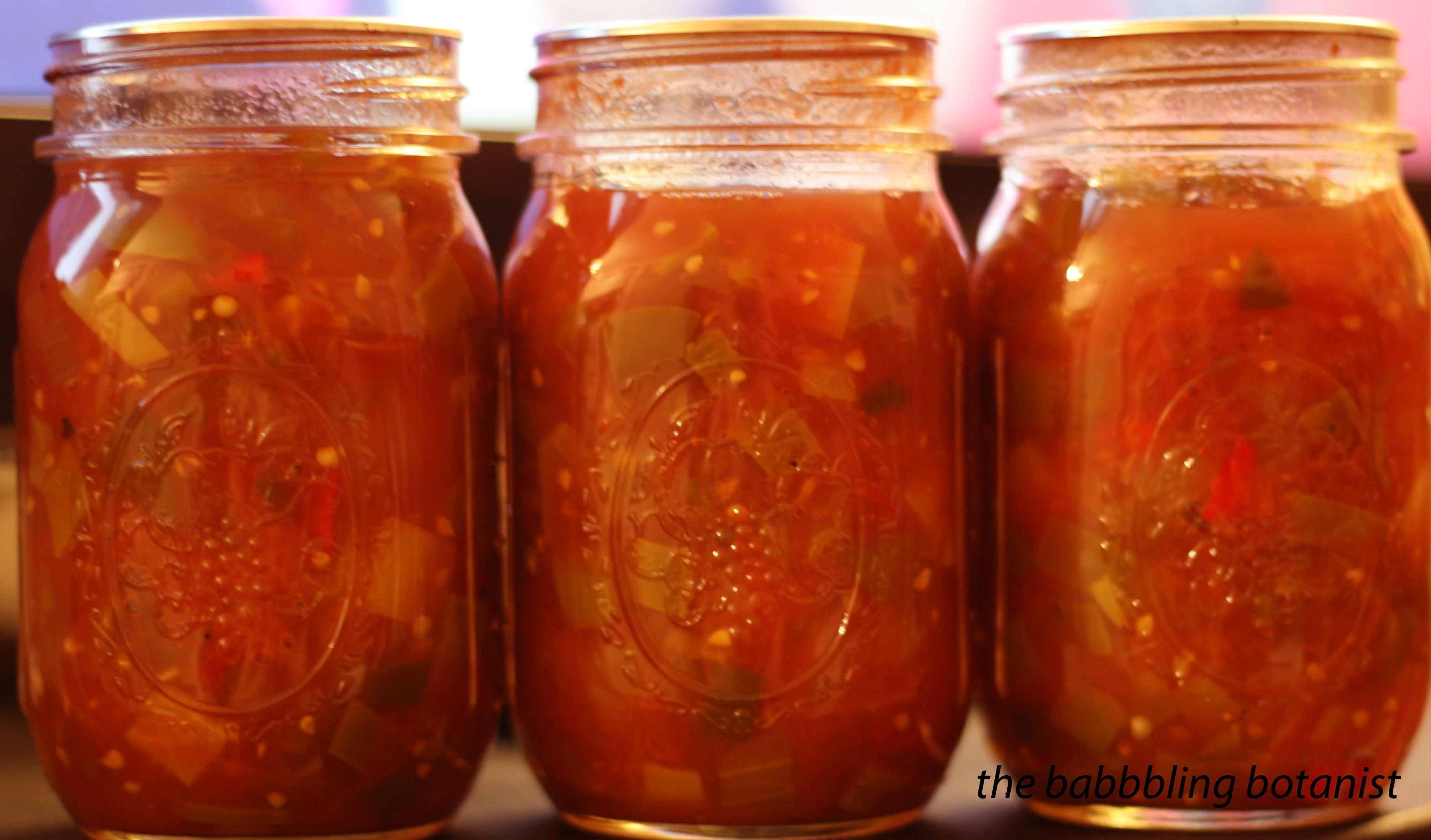 Prepare the canner, jars and lids. This recipe yields about 6 pints. Mix all the ingredients in a large stainless steel pot. Remember, do not alter the ratios of anything. You get 6 cups of tomatoes, 9 cups peppers/onions, and 1.5 cups of lemon juice. No reducing the lemon or adding extra veggies OK! Adding other dry spices is ok though, so if you want cumin, oregano or something else, add that now too. Heat all the ingredients to a boil over medium high, stirring occasionally. Simmer for at least 3 minutes, then fill your hot jars, leaving a half inch head space. Process for 15 minutes in a boiling water bath canner (sea level), covered by at least 1-2 inches of boiling water.