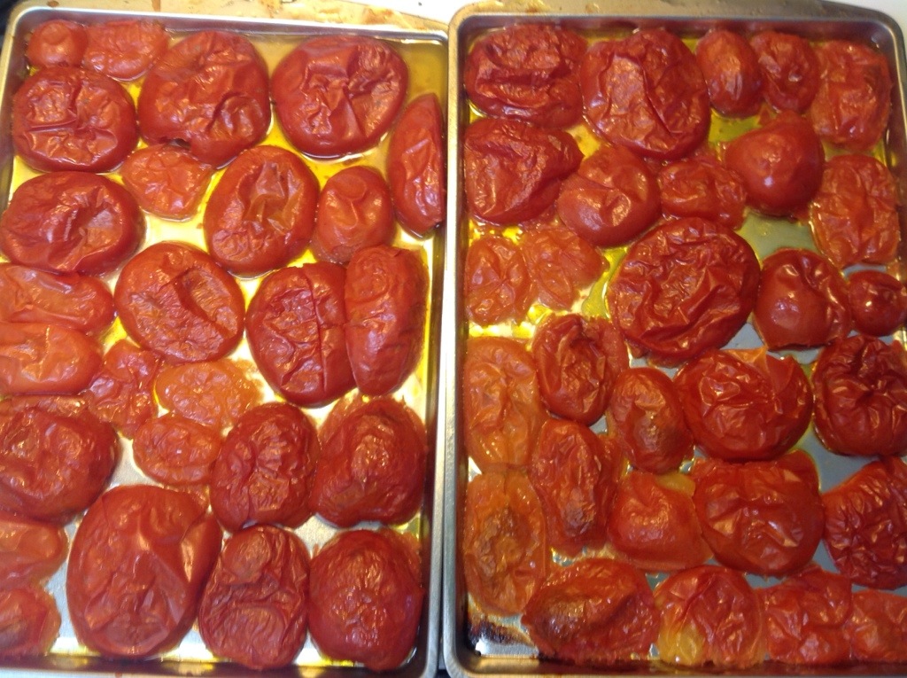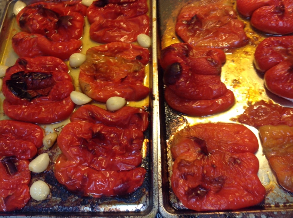 I’ve been wanting to do some different tomato sauce recipes and found this one in one of my newer canning books – “Preserving” by Pat Crocker. This recipe takes a little bit of work with all the roasting, but it is so freaking delicious that it’s totally worth the effort. Now because this is from one of my canning books that I don’t trust with my life necessarily (such as Ball, or an extension service publication), please see my little discussion at the end of this post about how I decided that it is safe for hot water bath canning (but don’t worry, I am posting it because I decided it is).