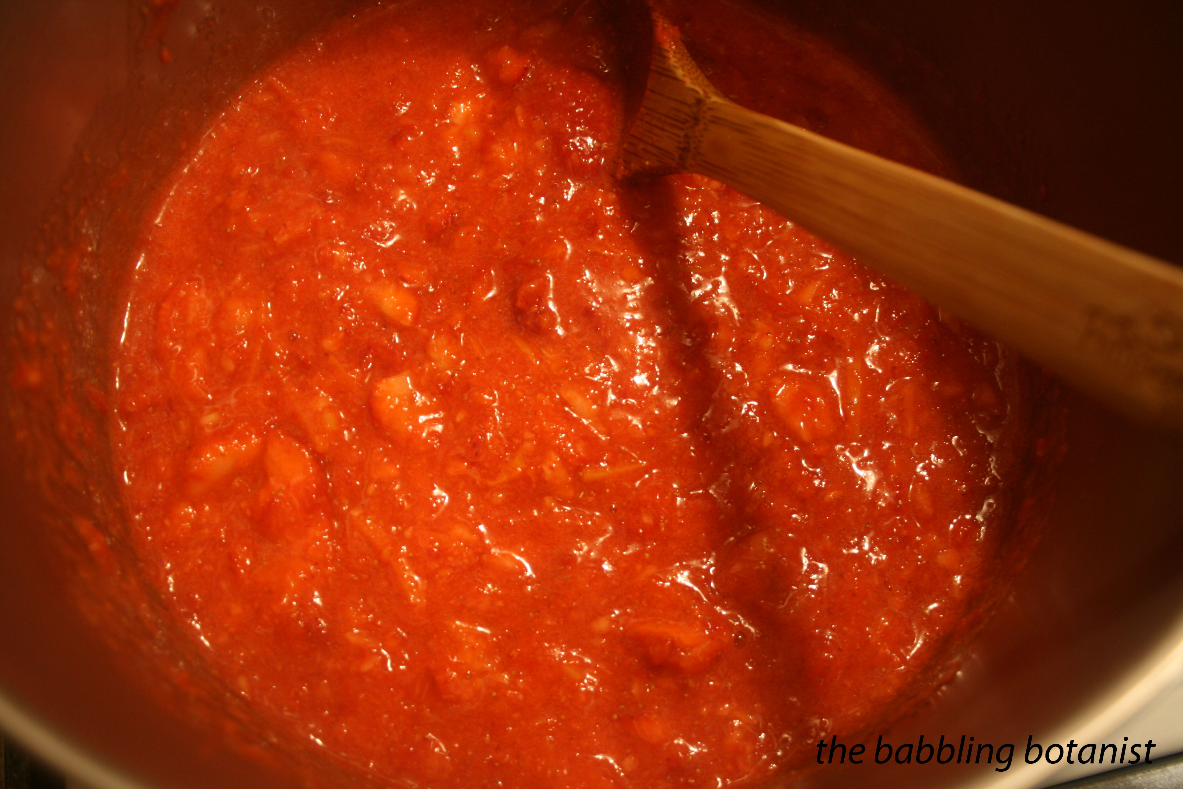 Combine your lemon juice, strawberry puree and sugar. We actually decided to do 1/4 of the sugar in this recipe. You can certainly adjust it to taste, or maybe try sweetening with honey or something. That could be really good. It definitely decreased the yield quite a bit, but this actually means you use less jars and lids, and if you decide it’s not sweet enough you can always add more sweetener when you open up the jar later. Heat the lemonade over medium high heat. Don’t boil though, bring it up to 190F.