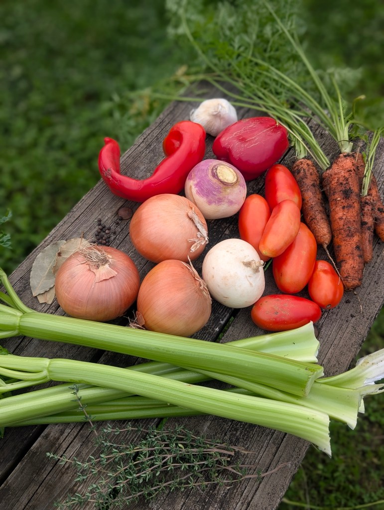 Today we’ll be talking about a classic pantry stable – vegetable stock. This recipe comes from my personal favorite canning book, the Ball Complete Book of Home preserving. Let’s dive in.