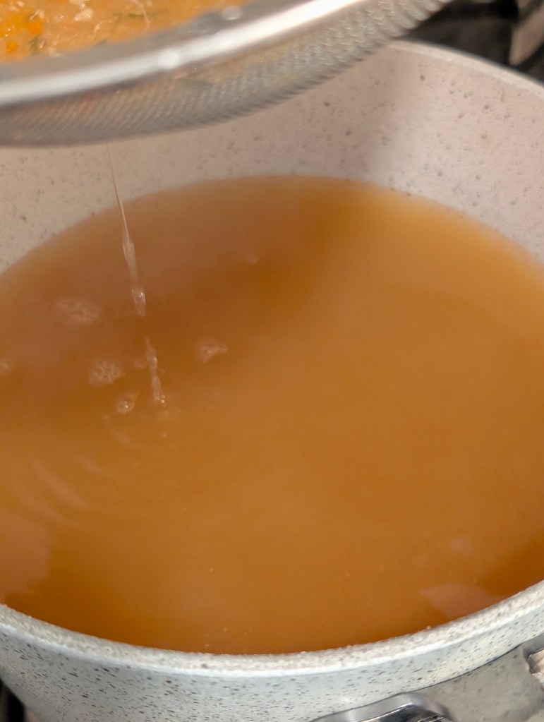 Prepare your pressure canner while you are returning the stock to a boil. Add 3 quarts of water to the canner. Place the rack in the canner and start to simmer the water on low heat.