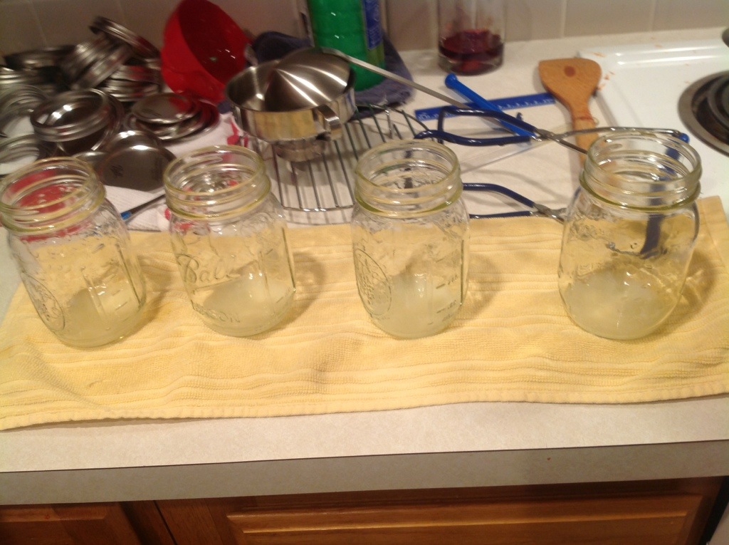 While they continue to cook down, prepare the canner, jars and lids. you will likely get a bit more of the sweet and sour sauce, since it has more added ingredients. Probably close to 3 pints for the stampede and 4 for the sweet and sour, depending of course how long you reduce it for. Once it’s ready, fill your hot jars with hot sauce, leaving a half inch head space. Wipe rims, apply lids, and tighten bands finger tip tight. Place the jars in a boiling water bath canner covered by at least 1-2 inches of water. Process for 20 minutes, starting the time when a full rolling boil is reached.